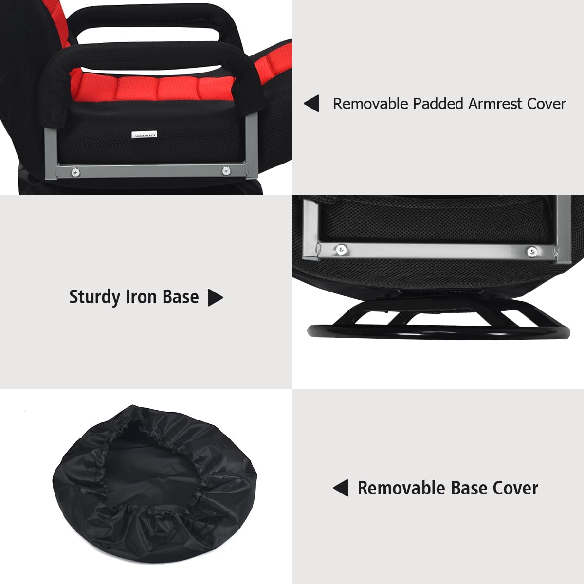 Giantex Floor Chair, 360 Degree Swivel Chair with Adjustable Backrest, Lumbar Support, Armrest, Foldable Lazy Sofa Rocker for TV, Reading, Playing Video Games, Black/Red