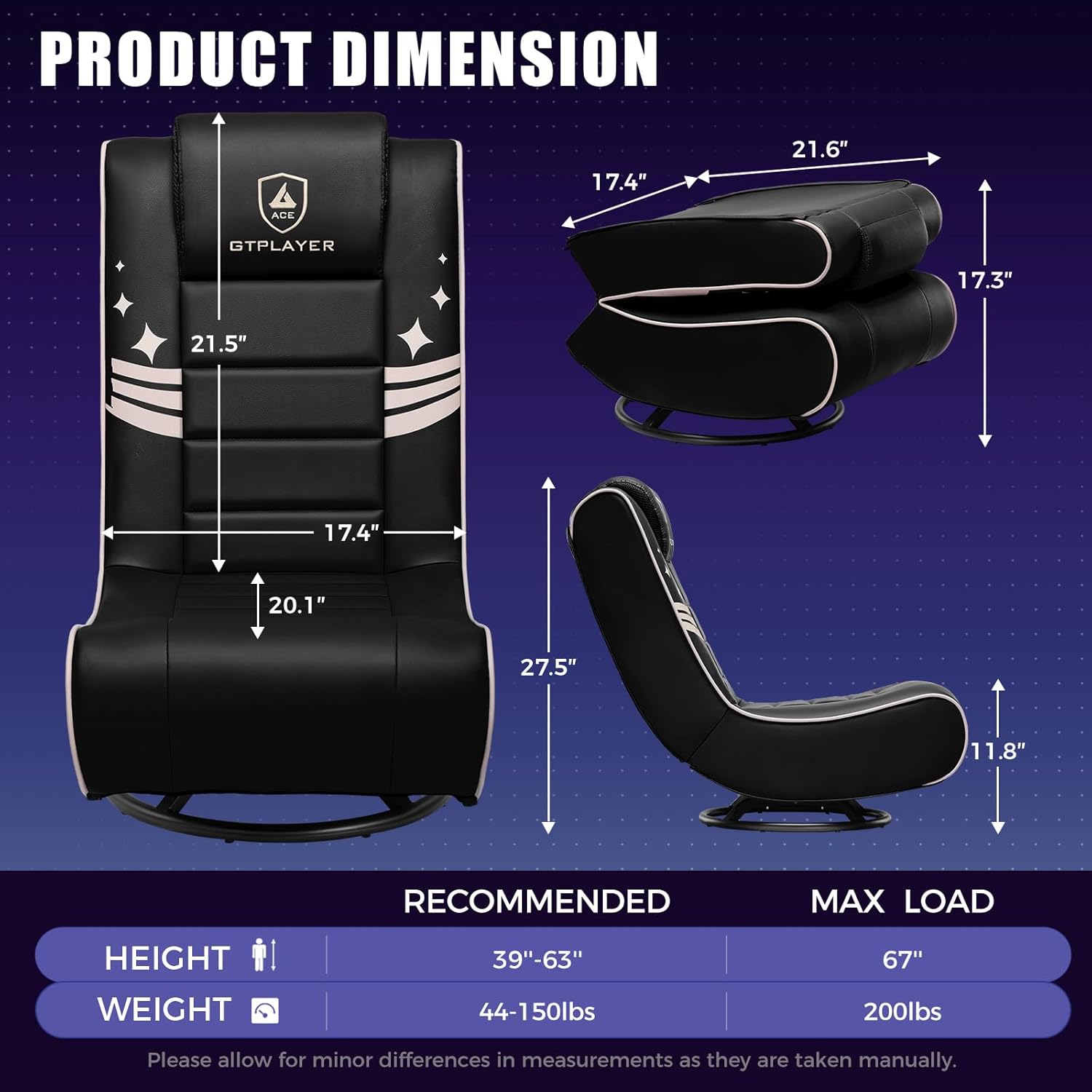 GTPLAYER Floor Gaming Chair Foldable Swivel Floor Chairs for Kids Boys Comfy Video Game Seat with 360° Multipurpose for Gamers, Bedroom or Game Room (Gold)